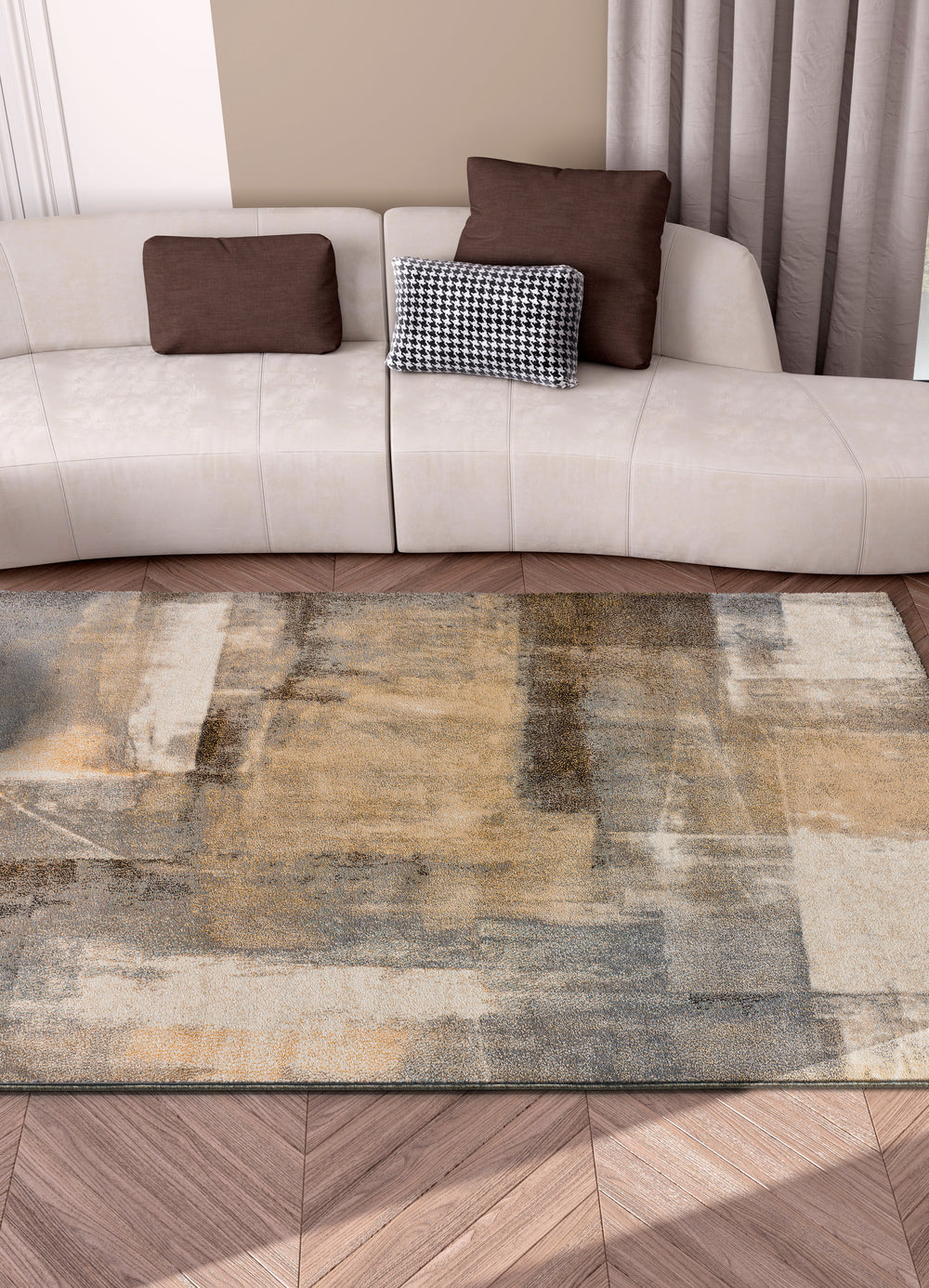Med sine harmoniske nuancer af beige, brun og grÄ skaber det en varm og indbydende atmosfÊre. Perfekt til bÄde moderne og klassiske hjem.